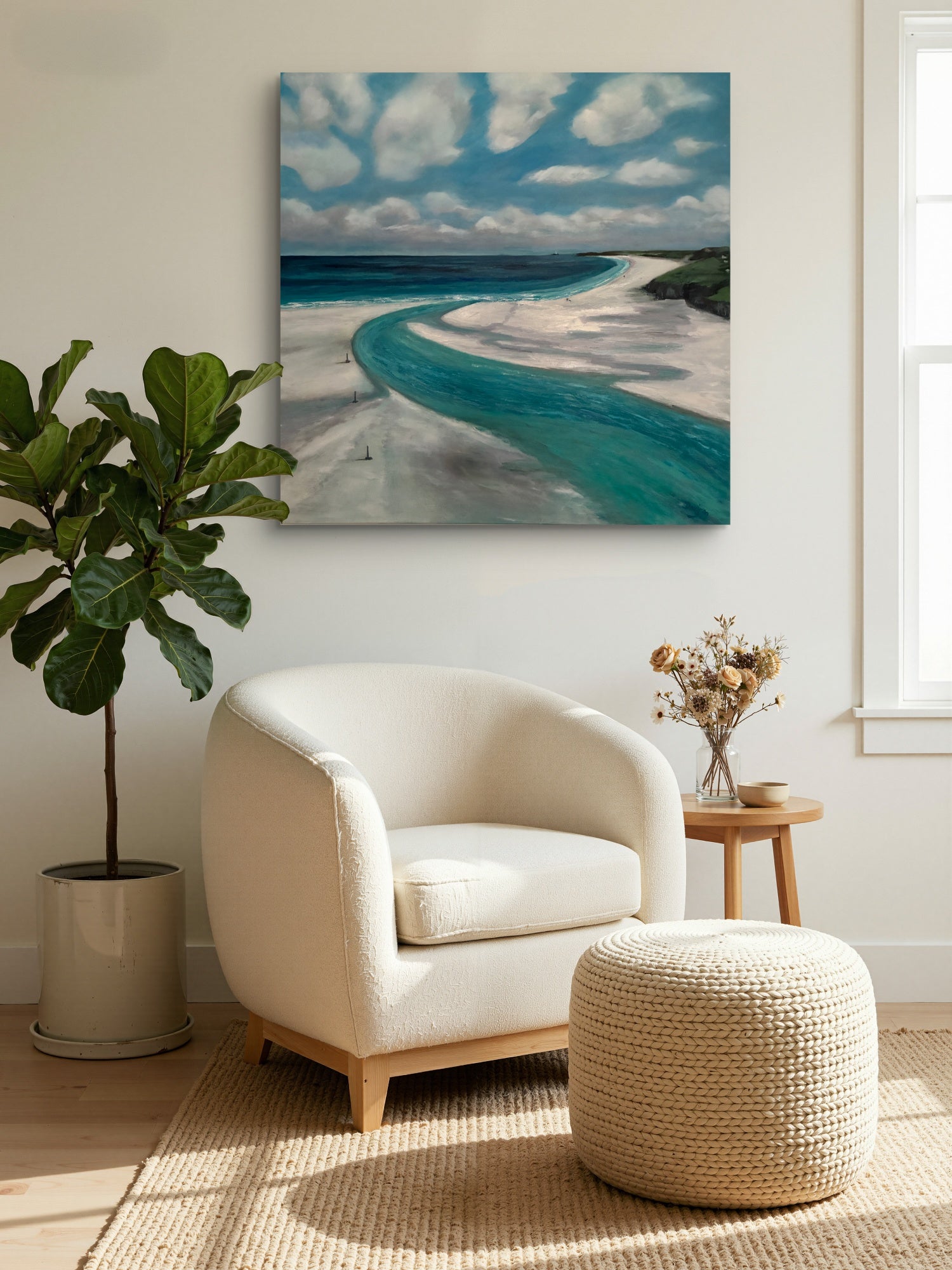 The painting is painted in traditional oils on a boxed Loxley canvas measuring 30x30 inches (76x76cm). It comes Unframed with white sides and is ready to hang.