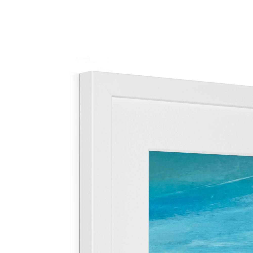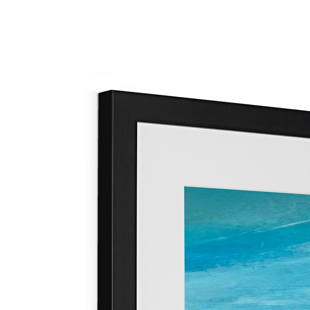 Constantine Bay is one of Cornwall’s finest beaches and loved by walkers and surfers alike. “Walking the Dog, Constantine Bay” depicts that sense of pleasure from walking along this beautiful shoreline, with the white sand and dunes on the right and the multi coloured rock pools and surf on the left, on an incoming tide. The frame has been created from high-quality wood, milled with simple clean lines and presented with a satin finish. Includes an off-white mount that will not discolour or fade with age.